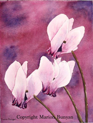 I love Cyclamens especially the little dainty ones. This is a watercolour I painted a few years ago.